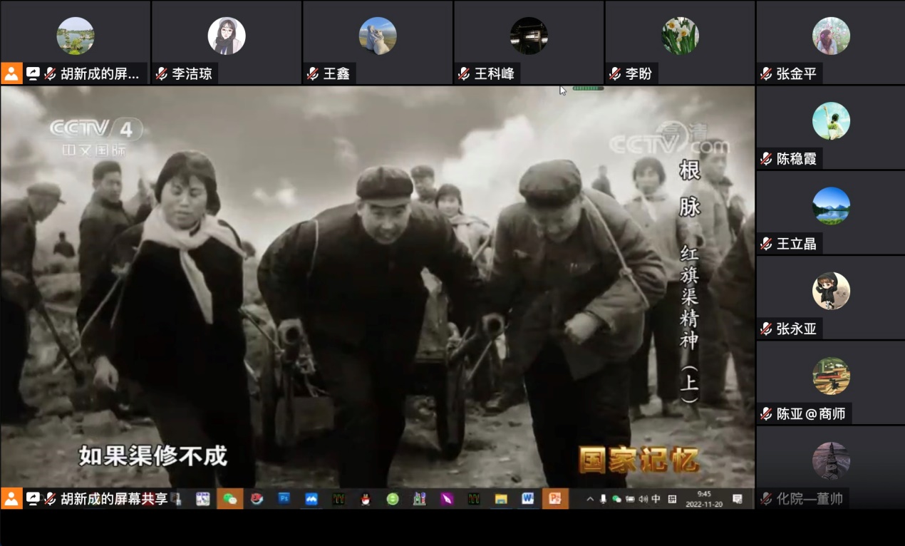 其次,组织支部成员观看中央电视台《国家记忆》栏目播出的专题片《根脉——红旗渠精神》,大家观看后受益匪浅。