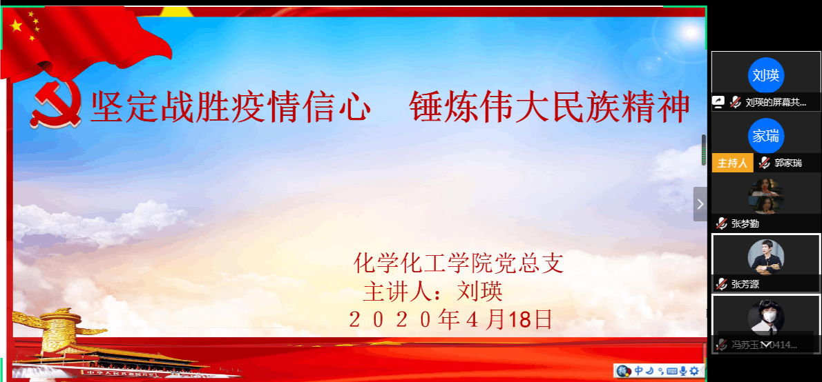 为提高入党积极分子的思想政治素质,培养广大积极分子的党性修养,使入党积极分子深入了解党的性质、宗旨和要求,4月18日上午,英国365集团官网以线上集中培训的方式开展了专题党课第二讲“坚定战胜疫情信心,锤炼伟大民族精神”。全体中级入党积极分子参加,主讲人为党总支副书记刘瑛。
