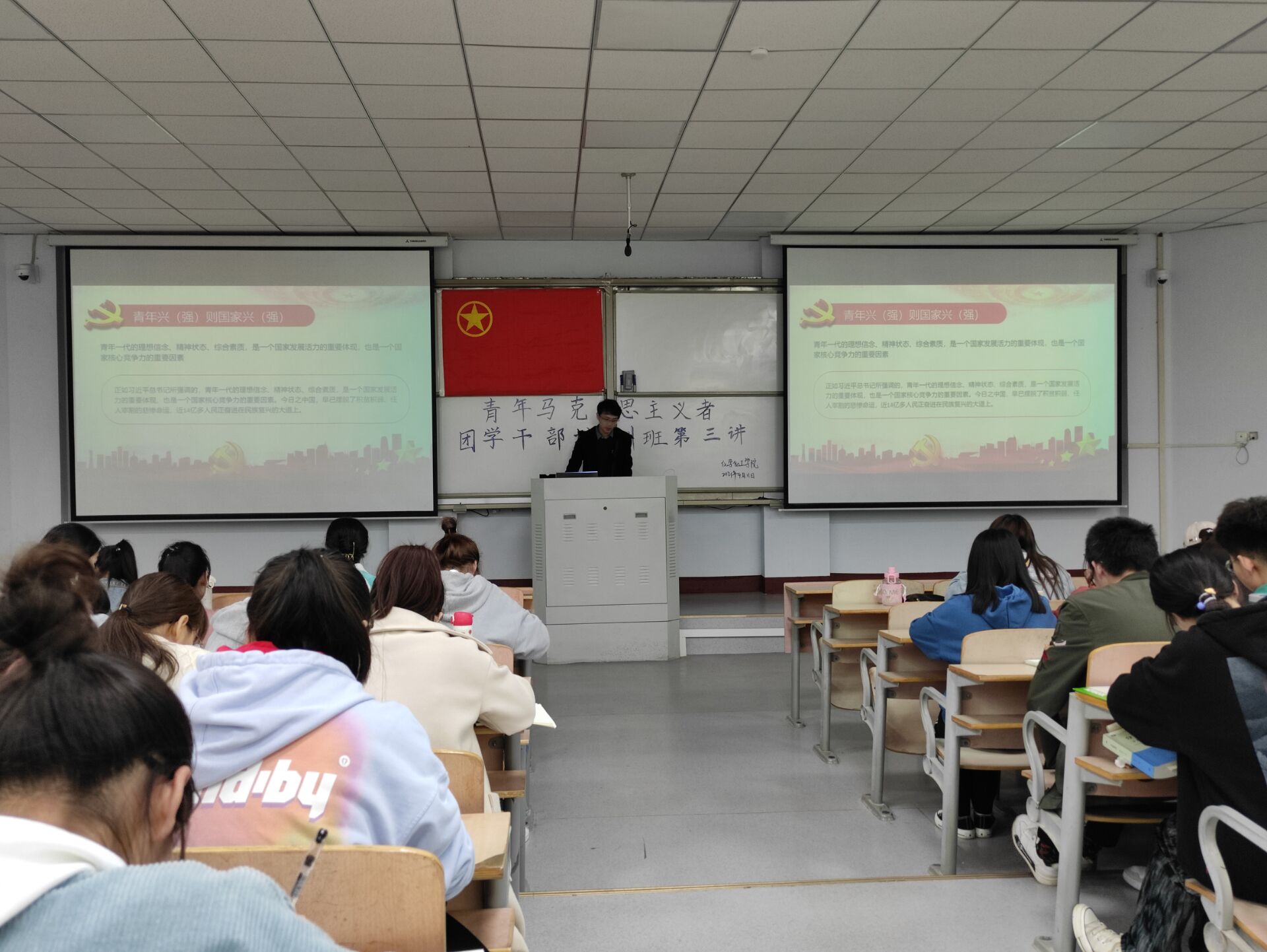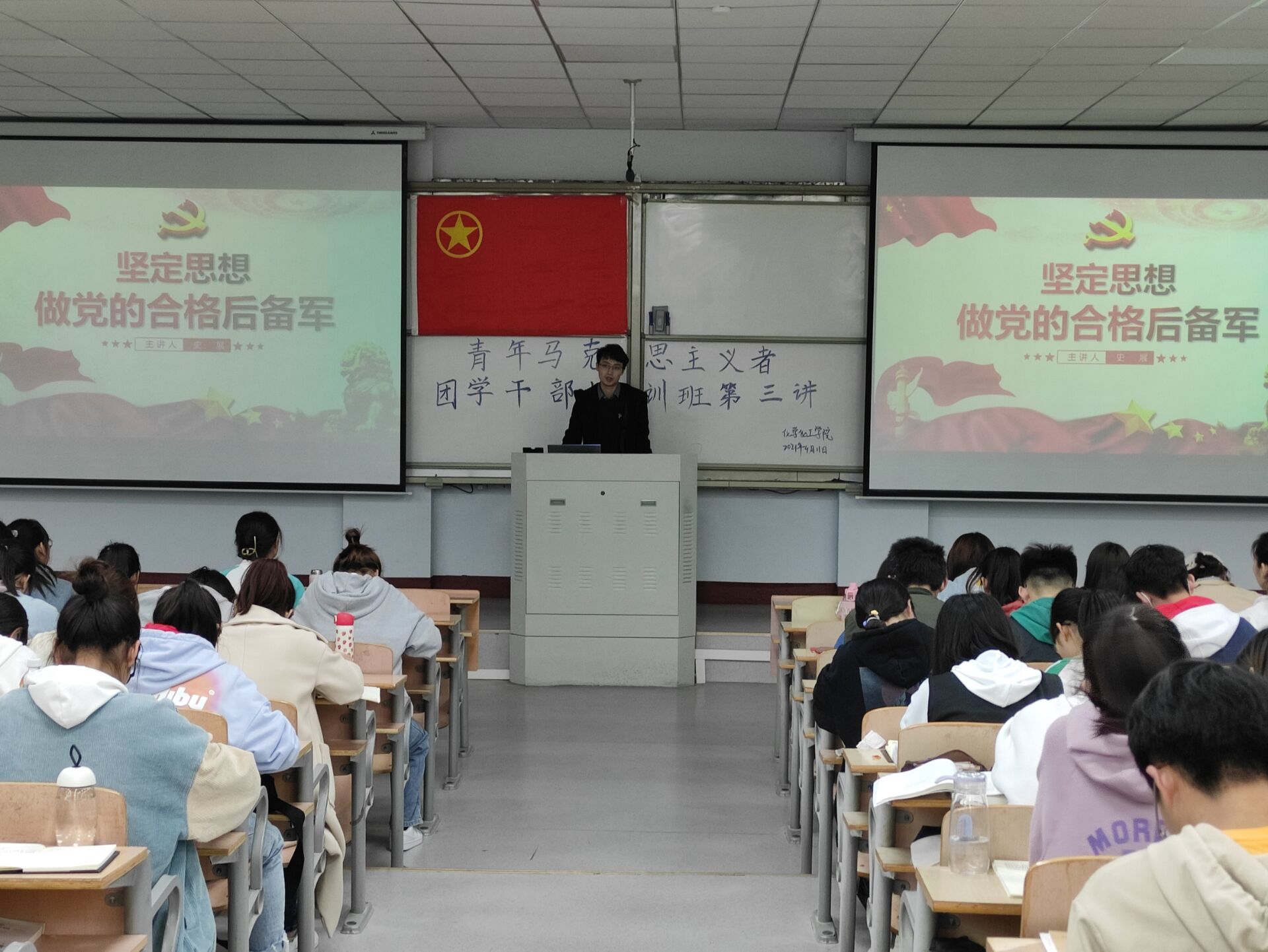 为加强入党积极分子培养教育,努力培育高素质党的后备军。英国365集团官网于4月11号在1号教学楼207教室开展以“坚定思想,做党的合格后备军”为主题的青马培训活动。员工第三党支部书记史展主讲,19级、20级青马培训学员参加。