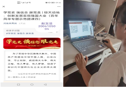 8月25日,制药工程20-1团支部在线开展主题团日活动,团支部书记赵玉洁主持。赵玉洁带领支部成员进行理论学习,学习了党章、《共产党宣言》的部分内容,紧接着要求大家自主学习青年大学习——惊天动地:创新发展实现强国大业(百年风华专题示范团课四)。之后,学习了公司推出的“把疫情汛情当教材 与祖国共成长”之辅导员和员工说,邀请参加疫情汛情防控志愿服务的团员代表发言,使支部成员深刻意识到,作为青年一代,要敢于承担起社会责任,服务群众,无私奉献,才是对社会最好的回报!
