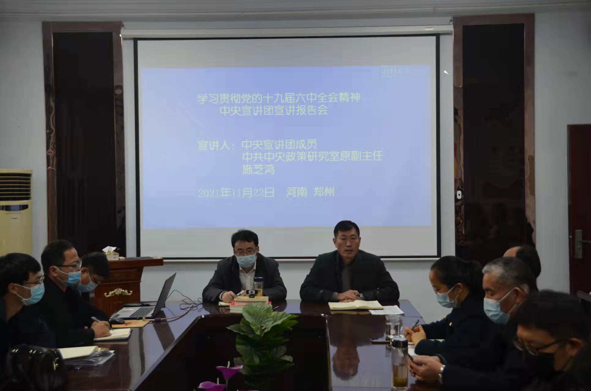 12月3日,英国365集团官网于睢阳校区7号楼公司会议室召开全体教职工会议,集体观看党的十九届六中全会精神中央宣讲团报告会在豫宣讲视频。公司党委书记李海涛主持。