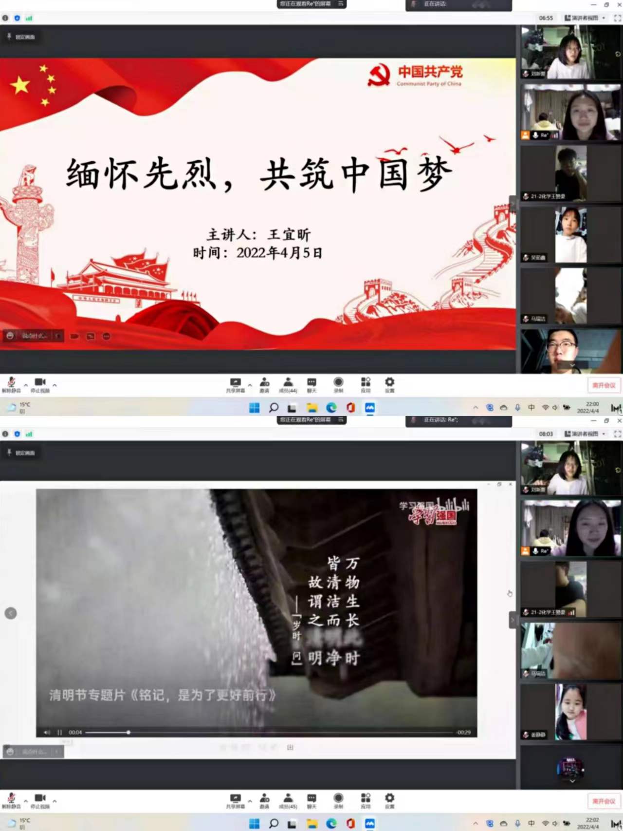 为了进一步弘扬中华民族的传统节日,4月5日,化学21-2团支部在线开展了“缅怀先烈,共筑中国梦”主题团日活动。活动中,集体观看清明节专题片,讨论交流革命先烈英勇事迹。
