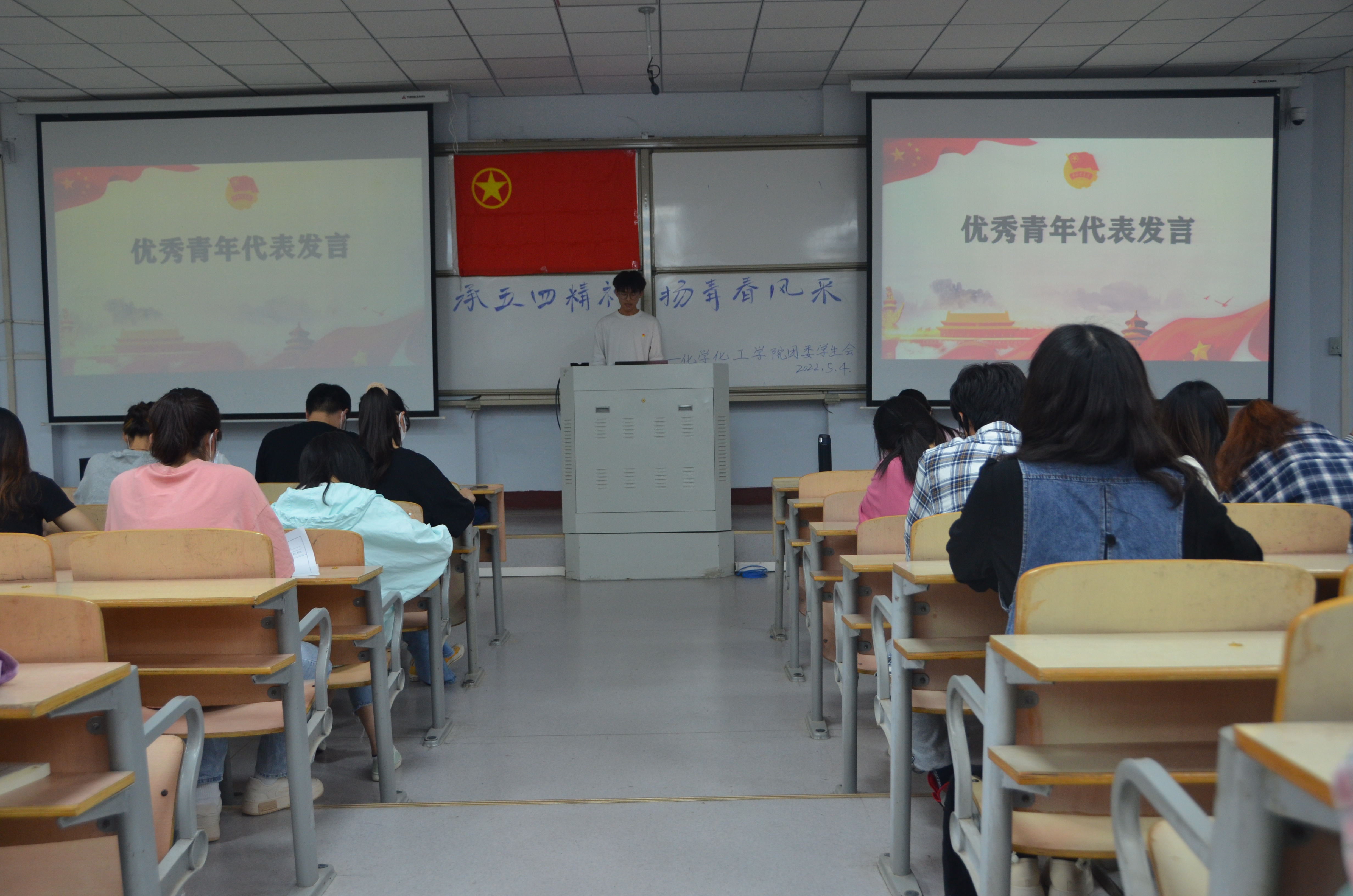 为传承五四精神、激发爱国情怀,5月4日,英国365集团官网团委在1号教学楼107教室开展“承五四精神扬青春风采”活动,团委副书记郭家瑞出席,英国365集团官网团委员工会全体成员以及各团支部书记、优秀团员代表参加本次活动。