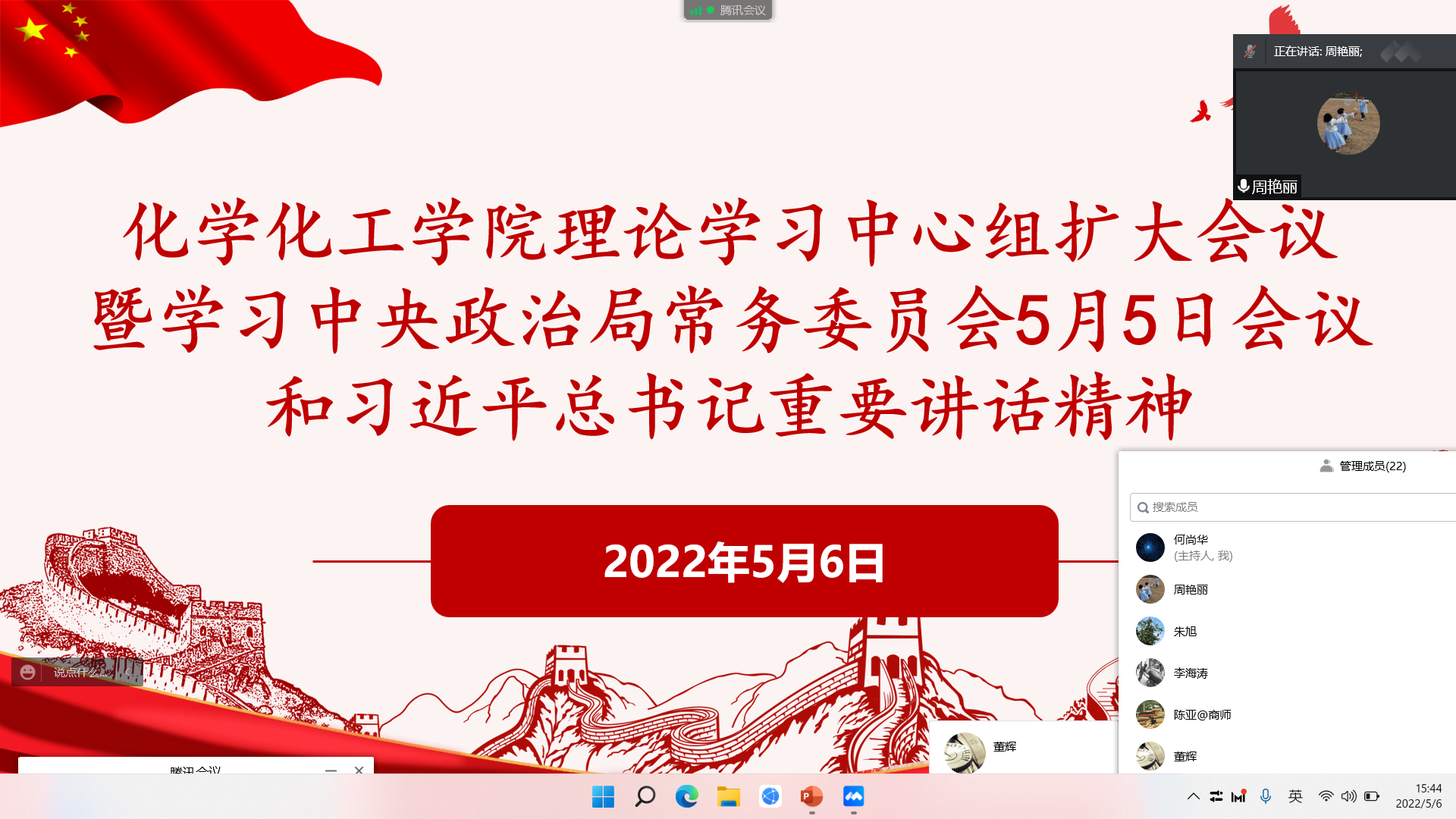5月6日下午,公司召开理论学习中心组扩大会议,会议通过腾讯会议线上举行。公司科级以上干部及全体辅导员参会,会议由党委书记李海涛主持。