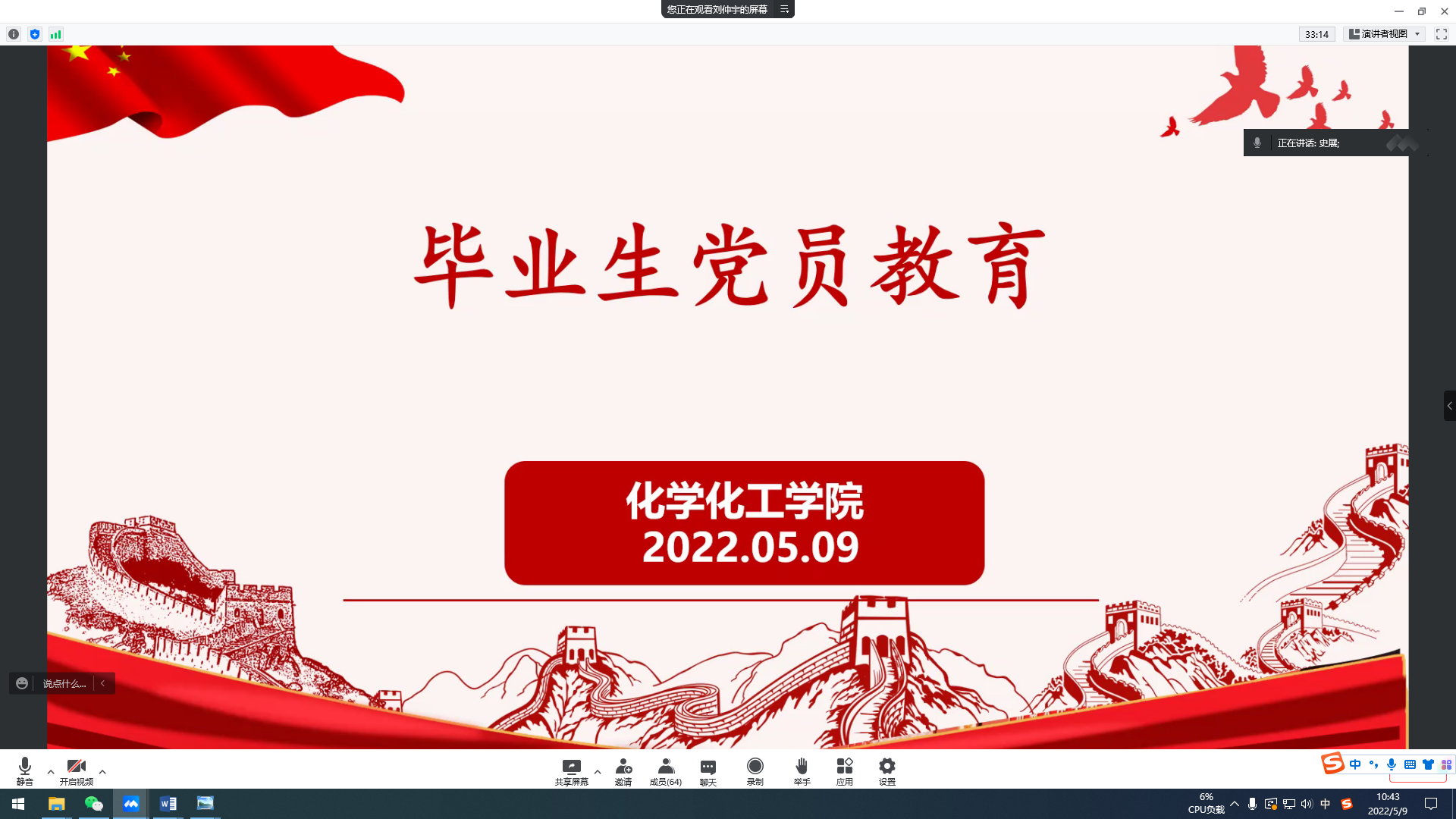 为做好2022届毕业生党员组织关系转移工作,公司于2022年5月9日,在腾讯会议召开毕业生党员教育会议,毕业班辅导员史展主持,2022届全体毕业生党员参加。