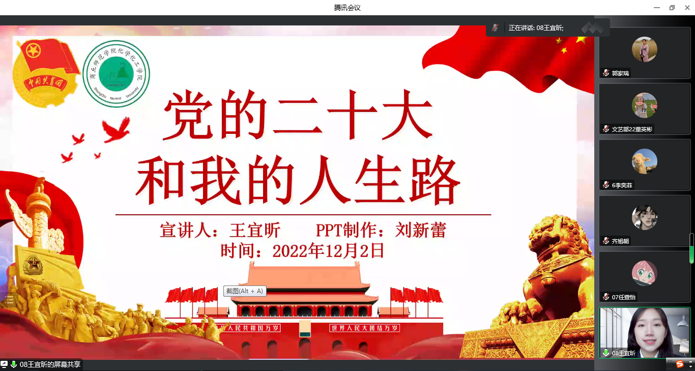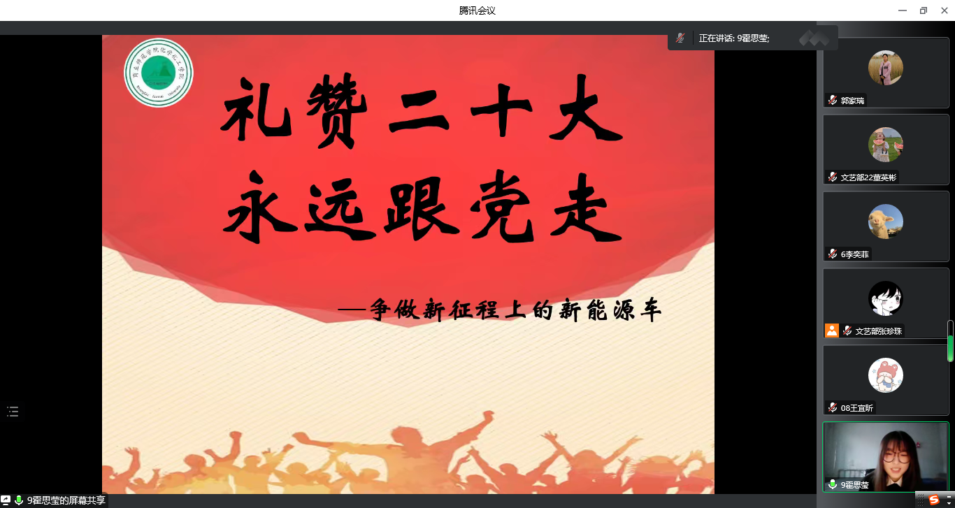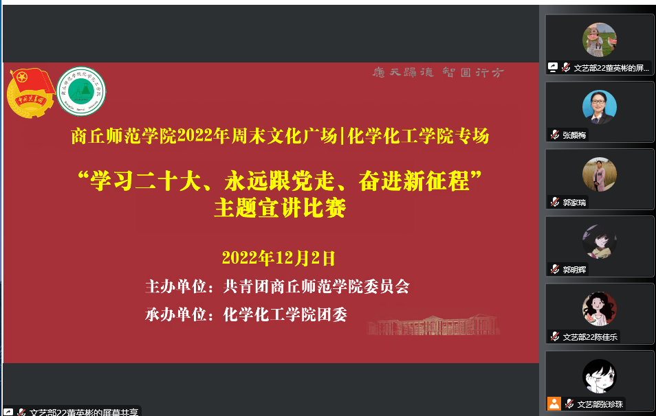 为引导广大青年员工认真研读党的二十大报告,进一步推动党的二十大精神在青年员工中入脑入心,12月2日下午,2022年周末文化广场英国365集团官网专场活动中,英国365集团官网团委在线举办了“学习二十大、永远跟党走、奋进新征程”主题宣讲比赛。特邀嘉宾校团委副书记徐航、公司党委副书记张颜梅莅临本次活动进行指导,院团委副书记郭家瑞、21级辅导员郭冠群、院团委员工会各部门负责人及员工代表观看了比赛。
