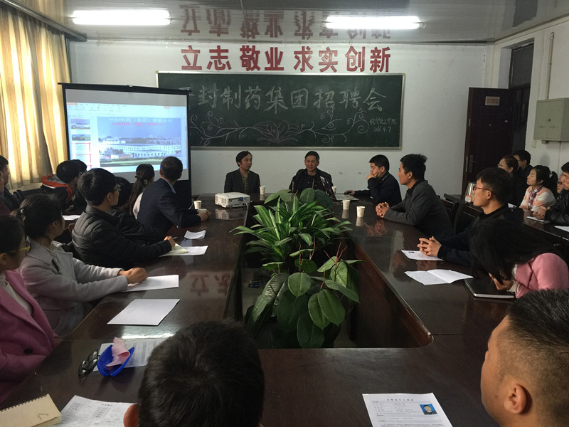 2016年4月7日,英国365集团官网于文化路校区七号办公楼召开了“河南开封制药集团招聘会”。公司党总支书记邱友良、副经理刘瑛、刘澜涛博士、团总支书记李龙梅及开封制药集团的招聘负责人出席招聘会。2016届部分有意向的毕业生参加了招聘会。招聘会由邱友良书记主持。