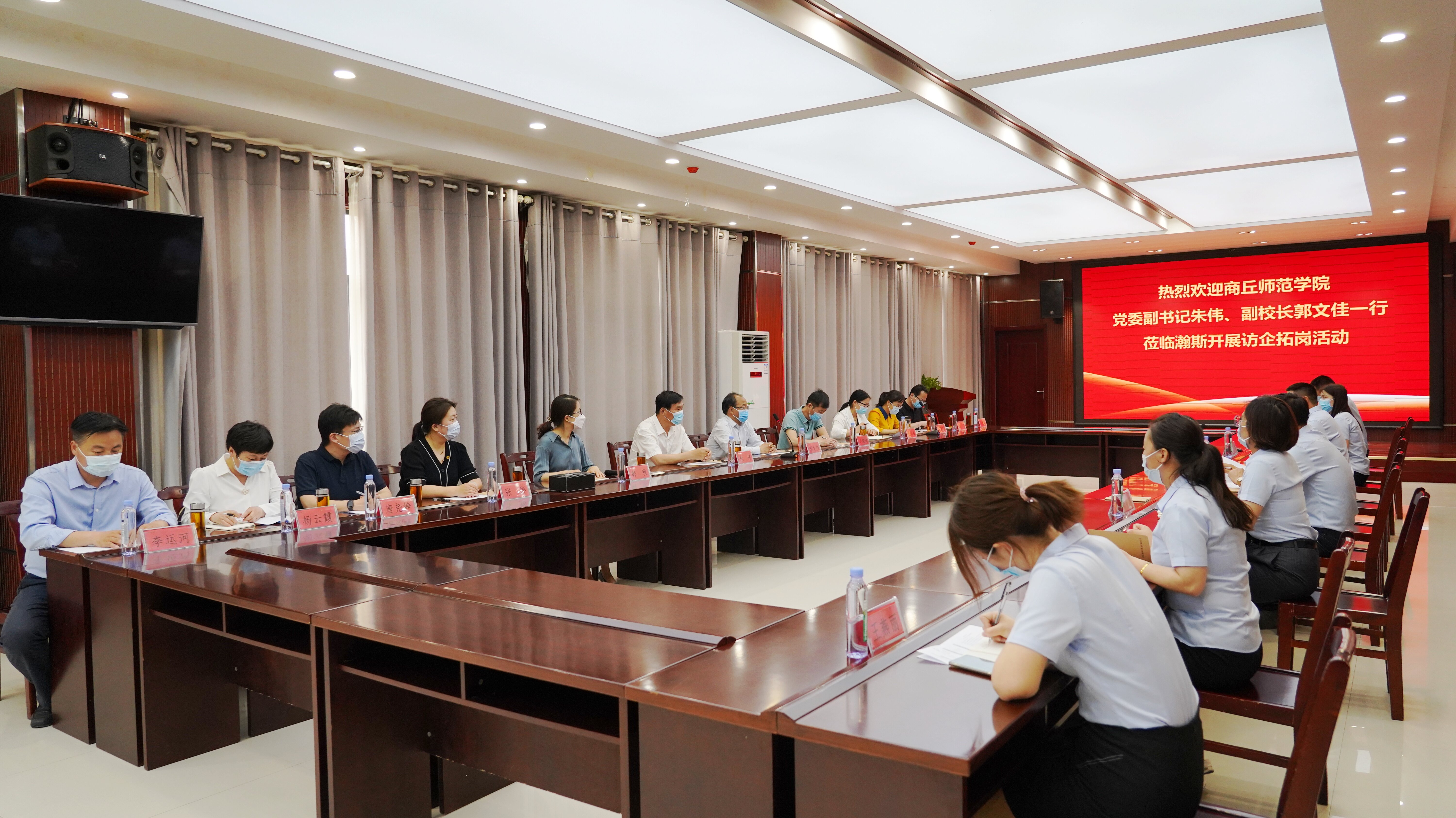 5月25日下午,商丘师范公司党委副书记、工会主席朱伟,副董事长郭文佳,创新创业教育与就业指导服务中心(创新创业公司)副主任韩秋,公司党委书记李海涛、党委副书记张颜梅、副经理周艳丽、副经理王涛、党政办公室何尚华,经济管理公司党委书记张彤、党委副书记唐尧峥、副经理杨云霞、副经理李运河一行莅临河南瀚斯作物保护有限公司开展访企拓岗活动。
