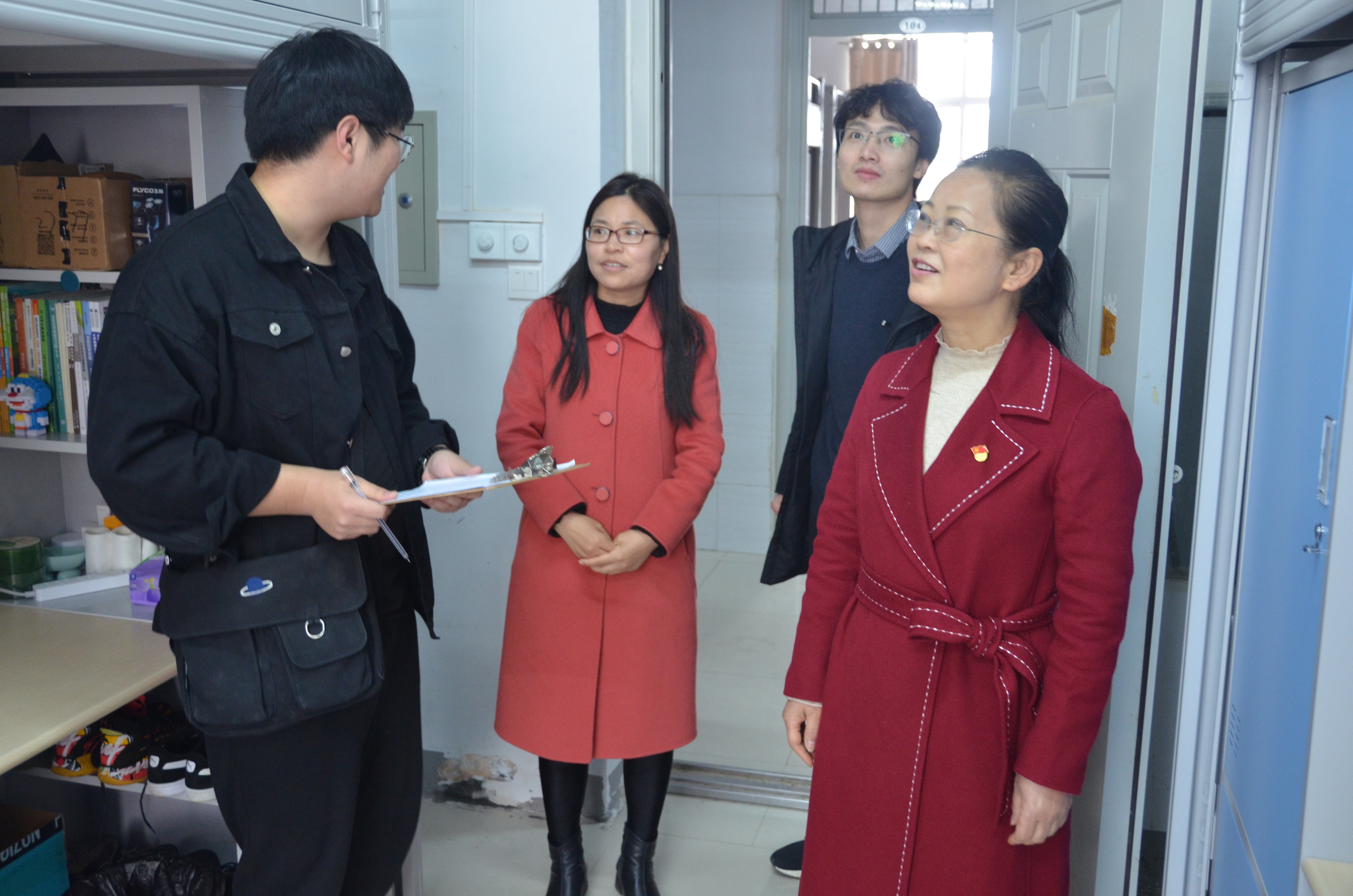 走访过程中,老师们详细询问员工日常生活情况,记录下员工遇到的难题,并对宿舍卫生、用电安全进行了检查。刘瑛提醒同学们一定要遵守宿舍管理规定,不使用违章电器,按时就寝,保持宿舍干净整洁,舍友之间相互理解包容、相互帮助,共同营造一个和谐、友爱、温馨的宿舍环境。刘瑛还提醒同学们,由于疫情防控形势需要,目前公司还处于封闭管理状态,希望同学们能继续坚持“非必要不外出”的原则,积极配合公司做好疫情防控工作,安排自己的好学习生活。此外刘瑛也对同学们的理解与配合表示感谢。