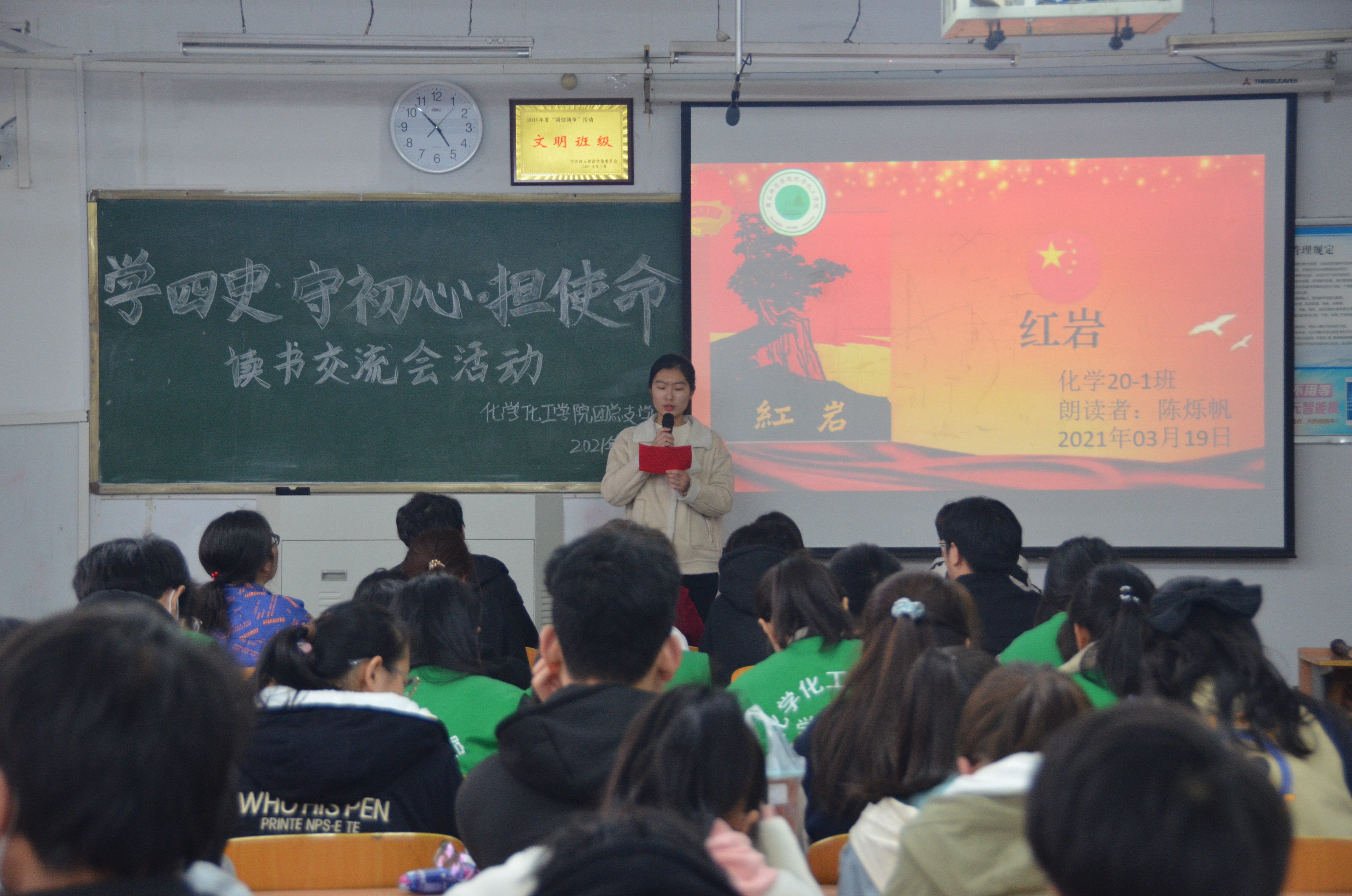 活动中,同学们朗诵了红色经典中的精彩节选片段,时而低沉、时而激昂的朗诵获得了台下观众的阵阵掌声。