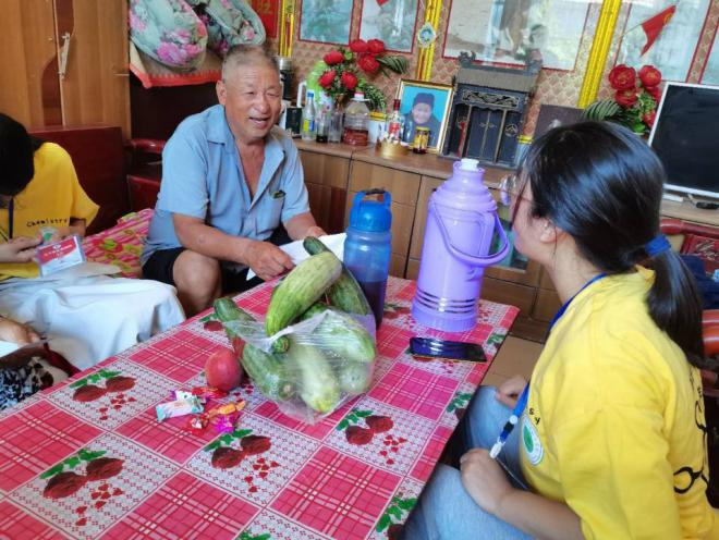 实践团成员走访了解到村里有许多独居老人,他们生活简单,缺少关心和陪伴。为此实践团成员们帮助老人整理衣物、打扫卫生,陪他们聊天、唱歌,倾听他们内心想法。陪伴是最美好的爱,实践团成员的到来让冷清的屋子充满了欢声笑语,让长期独居的老人内心感受到温暖和慰藉。