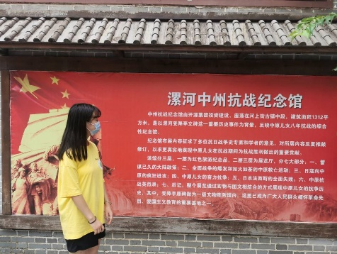 7月25日是实践活动开始的第六天,调研团队来到河南漯河开展调研,进行“学习抗战历程,传承革命精神”。团队成员们怀着一种敬意参观了中州抗战纪念馆,看到了陈列的防毒面具,土盗枪,各种刺刀等300多件,受降亭原碑作为镇馆之宝也陈列在馆内。在这里,调研成员们学习了更多的抗战历程,革命精神得到了很好的传承。