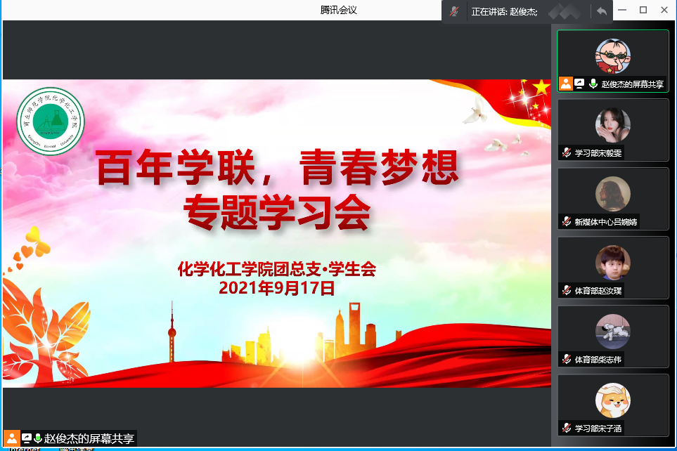 会议第二项,学习习近平总书记重要讲话精神,赵俊杰从学习习近平总书记在庆祝中国共产党成立100周年大会上的讲话、学习习近平总书记致全国青联十三届全委会和全国学联第二十七次代表大会的贺信和党中央致词、学习习近平总书记关于青少年员工成长的重要要求摘录三方面带领大家进行学习。随后开展“百年学联,青春梦想”专题学习,赵俊杰从学习学联历史,以史为鉴、学习学联历史,知史明理、学习学联历史,接力奋进、学习学联历史,攻坚克难四个方面带领大家进行学习。