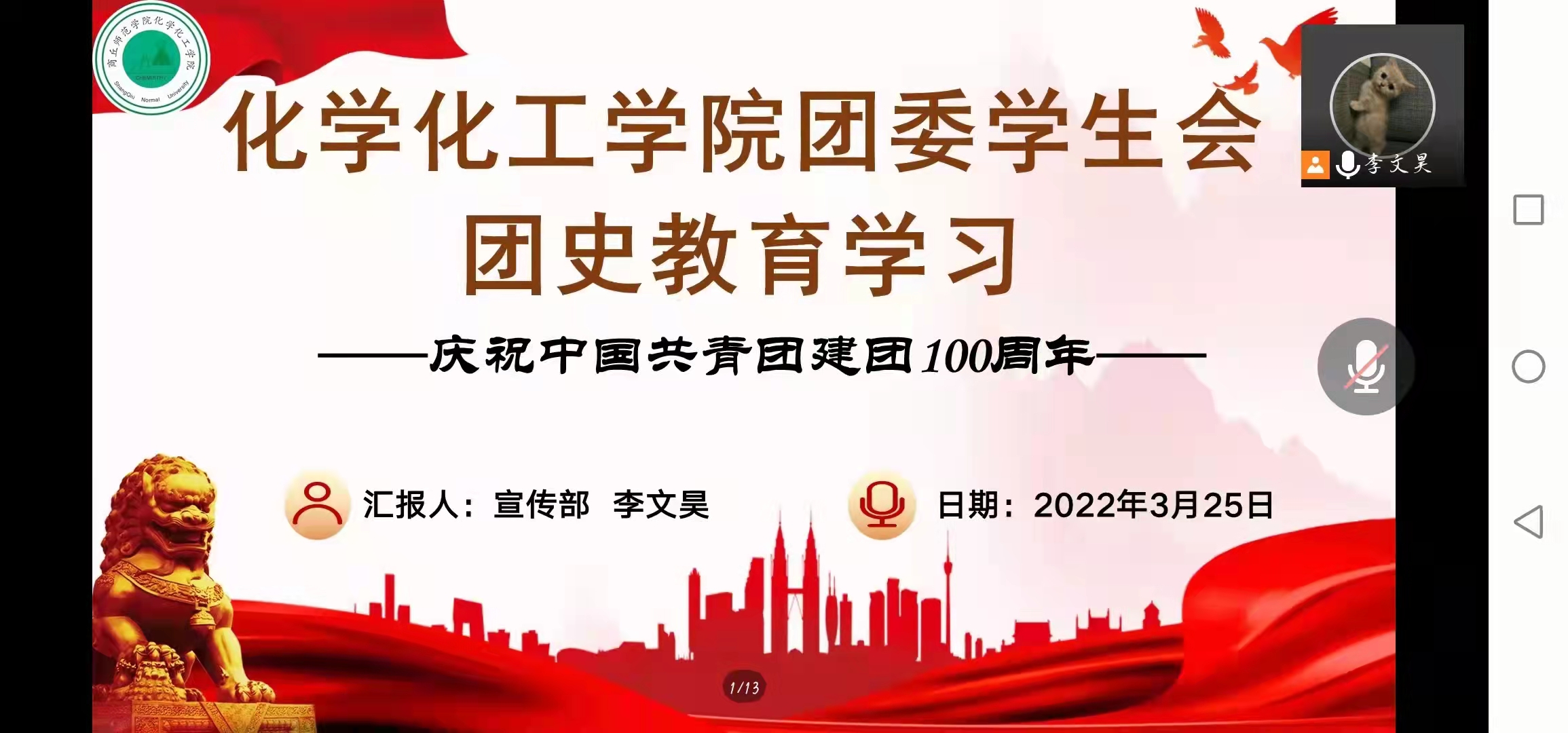 为深化团学干部对团史的认识,进一步强化对团组织的认识,3月25日,英国365集团官网团委员工会开展线上会议,进行百年团史学习教育。会议由院员工会宣传部负责人李文昊主持,院团委员工会全体成员参加。
