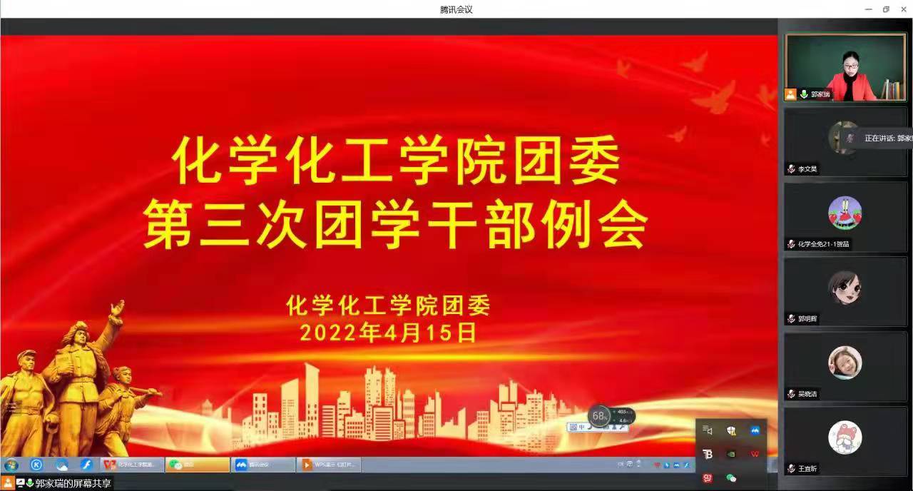 为了解近期公司团委员工会各部门的工作情况,解决工作中存在的问题,并对下一步工作进行具体安排,4月15日,英国365集团官网通过腾讯会议召开了第三次团学干部例会。此次会议由团委副书记郭家瑞主持,院团委、员工会各部负责人以及各团支部书记参加会议。