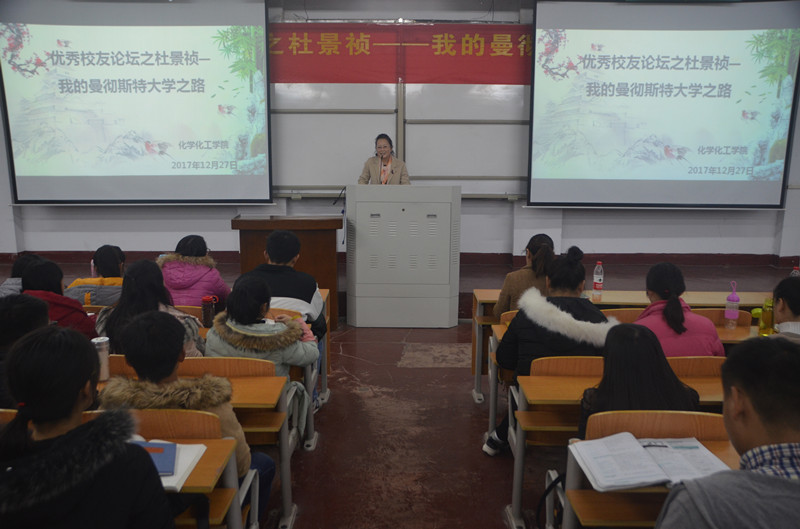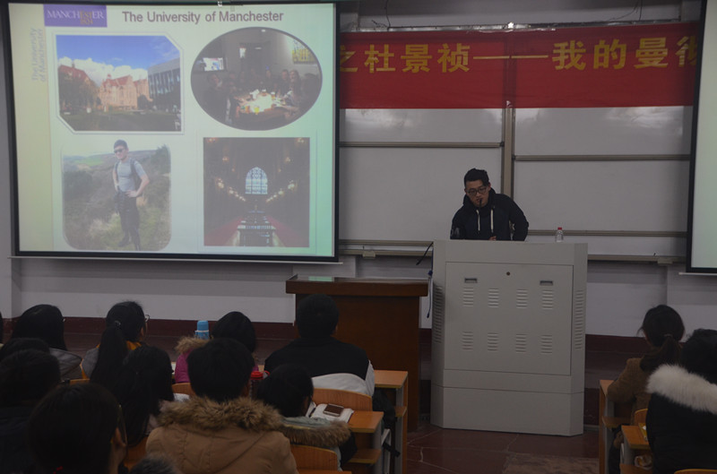 为进一步加强创新创业教育工作,激励广大在校员工努力学习,立志成才。12月27日晚,英国365集团官网于文化路校区1#106教室举办优秀员工论坛讲座,特邀公司2013届优秀员工杜景祯同学给我们分享他的曼彻斯特大学之路,党总支副书记刘瑛、17级辅导员郭家瑞以及公司2017届全体新生参加了论坛。论坛由公司党总支副书记刘瑛主持。