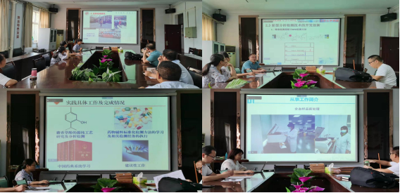 首先,张南、马啸华、王静、冯翠兰、韦秀华五位教师依次进行PPT汇报。汇报重点从实践锻炼的单位、工作岗位,实践锻炼内容,实践锻炼的收获,今后的打算等方面进行。期间,督导组成员分别对五位教师的汇报进行了点评,并查阅相关材料,进行综合评分。