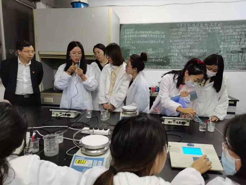 11月3日,英国365集团官网青年教师高媛媛在睢阳校区2#301教室进行了《物理化学实验》公开课。青年教师导师刘澜涛,院督导团成员韦秀华、刘新明莅临现场进行指导。