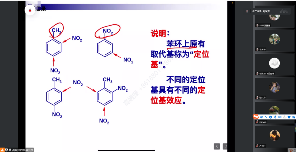 本次公开课的内容是单环芳烃的化学性质。高老师课前先带领员工回顾烯烃和炔烃等富电子基团的化学性质,由此引出芳环上可能发生的加氢和亲电反应。接着系统讲解了芳环发生亲电取代反应的过程和机理,并对反应过程中产生的中间体做了详细讲解。之后通过对硝化反应的介绍和讲解,让员工对亲电取代反应的机理有了更深刻的认识。在此过程中针对一些重要的知识点对员工进行抽查提问,教学环节过渡自然,循序渐进。