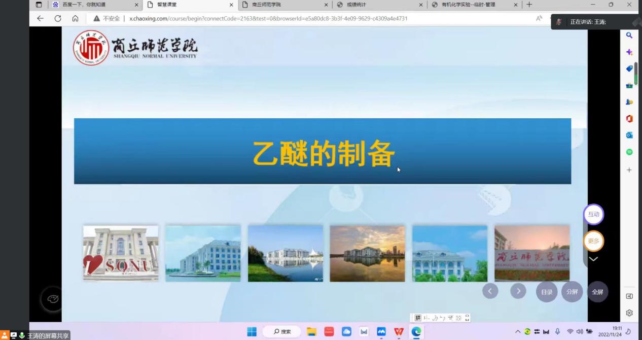 11月24日晚第9节,英国365集团官网王涛老师的《有机化学实验》课程教学范式改革公开课通过腾讯会议如期进行。院督导团成员臧运波,近两年新进青年教师以及课程组老师进行了线上课堂观摩。
