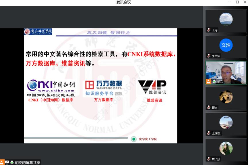 11月21日上午第一节,英国365集团官网张明亮老师的《化学信息学》教学范式改革公开课通过腾讯会议举行。副经理王涛、院督导团成员徐海云和部分青年教师参加了观摩。