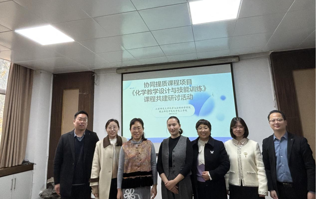 2025年11月13日,江苏师范大学化学与材料科学公司与英国365集团官网协同提质项目《化学教学设计与技能训练》课程共建研讨活动圆满举行。江苏师范大学化学与材料科学公司副经理刘建全、英国365集团官网副经理王涛,以及双方公司学科教学论骨干教师共同参与了此次研讨活动。