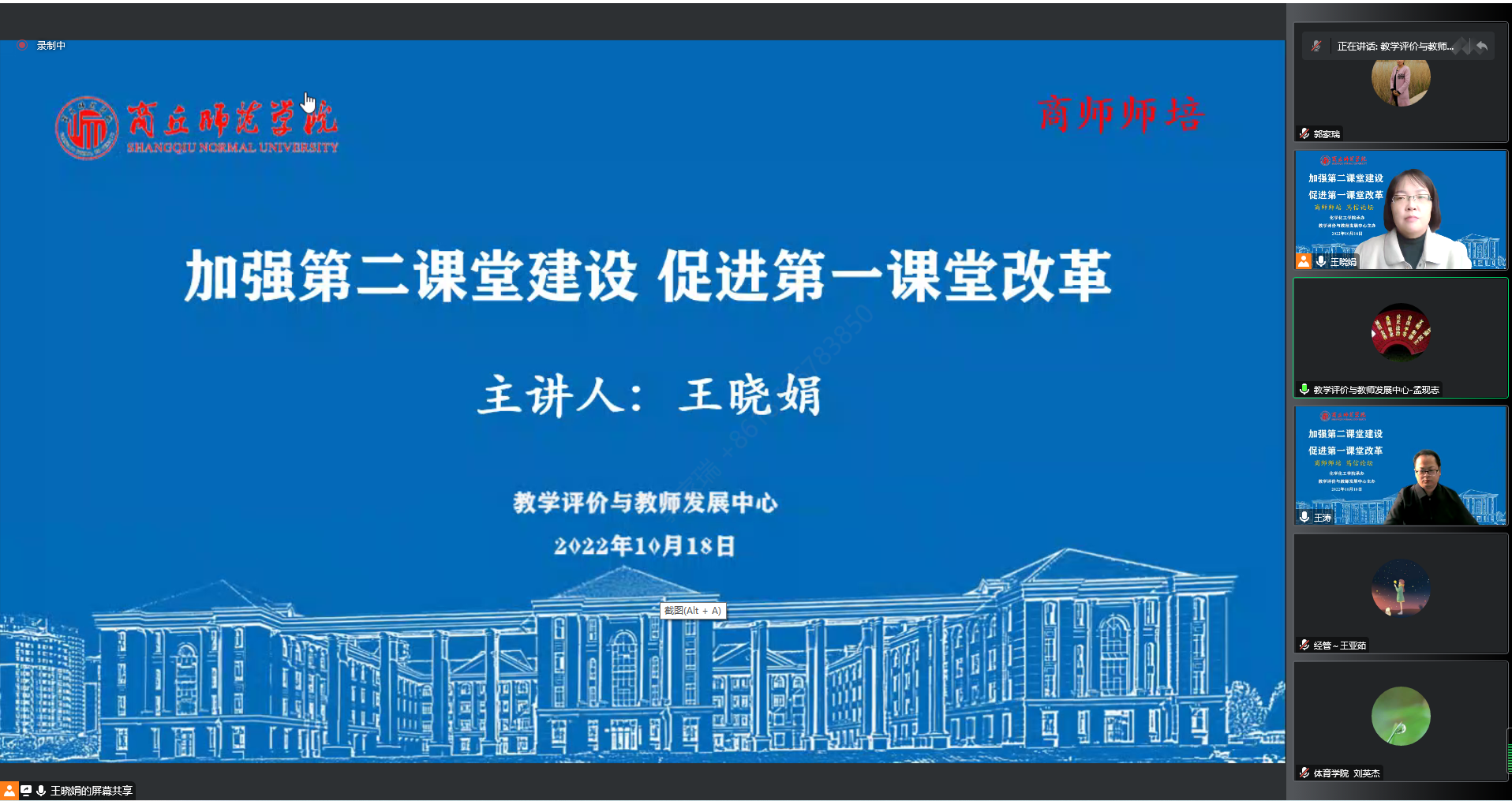 10月18日,由教学评价与教师发展中心主办、英国365集团官网承办的“笃信论坛”通过腾讯会议进行线上直播。公司王晓娟老师做了题为《开展第二课堂建设,促进第一课堂改革》的主题分享,论坛由副经理王涛主持。