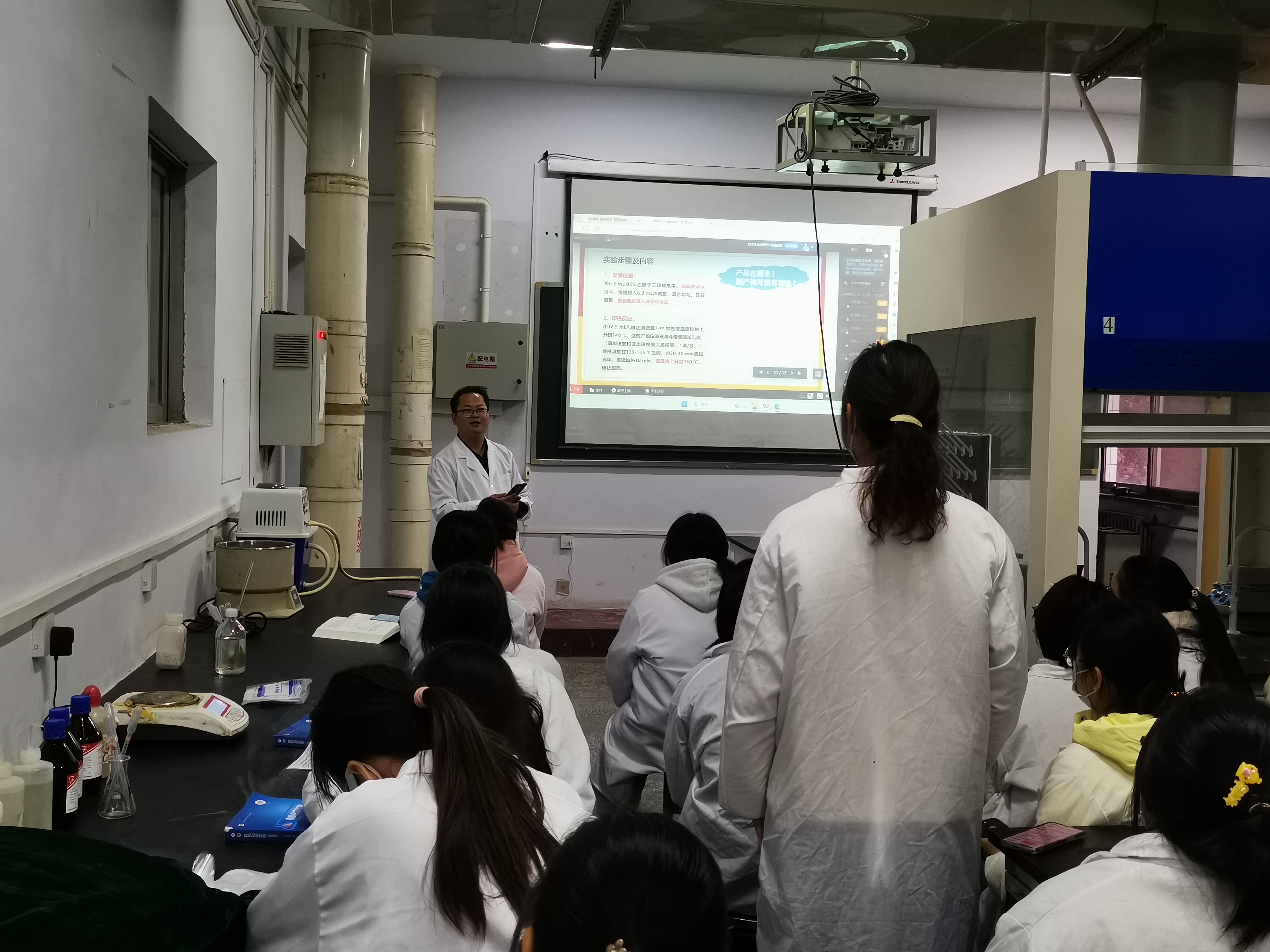 此次公开课的内容是有机化合物合成模板的“乙醚的制备”,教学方法采用“课前:布置任务点+员工线上预习;课中:任务驱动+教师总结;课后:实验报告+问题跟帖讨论”线上线下相结合的模式展开。课堂上王涛老师重点围绕实验原理、实验装置、实验方案、实验注意事项四个方面,采取随机抽签、抢答、主题讨论等形式检查员工对任务点的完成情况。整个课程内容充实设计巧妙,课堂气氛活跃,员工对乙醚制备的关键操作要点有了更好的理解。