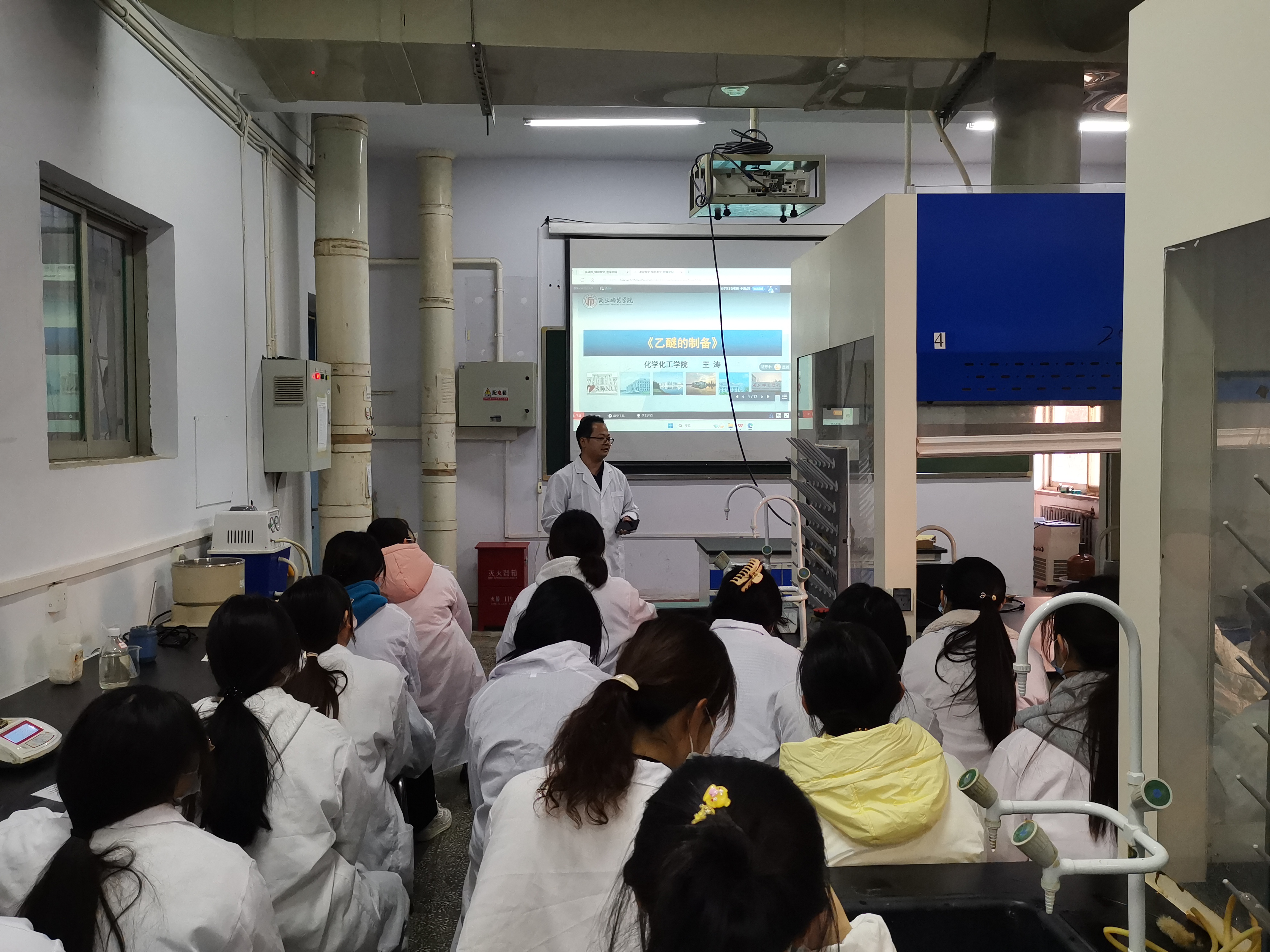 为扎实推进课程建设,2023年12月4日王涛老师负责的《有机化学实验》课程教学范式改革公开课在文化路校区化学实验楼407实验室举行。院督导团成员冯翠兰、臧运波,课程组教师以及近两年新入职青年教师参加了本次观摩活动。