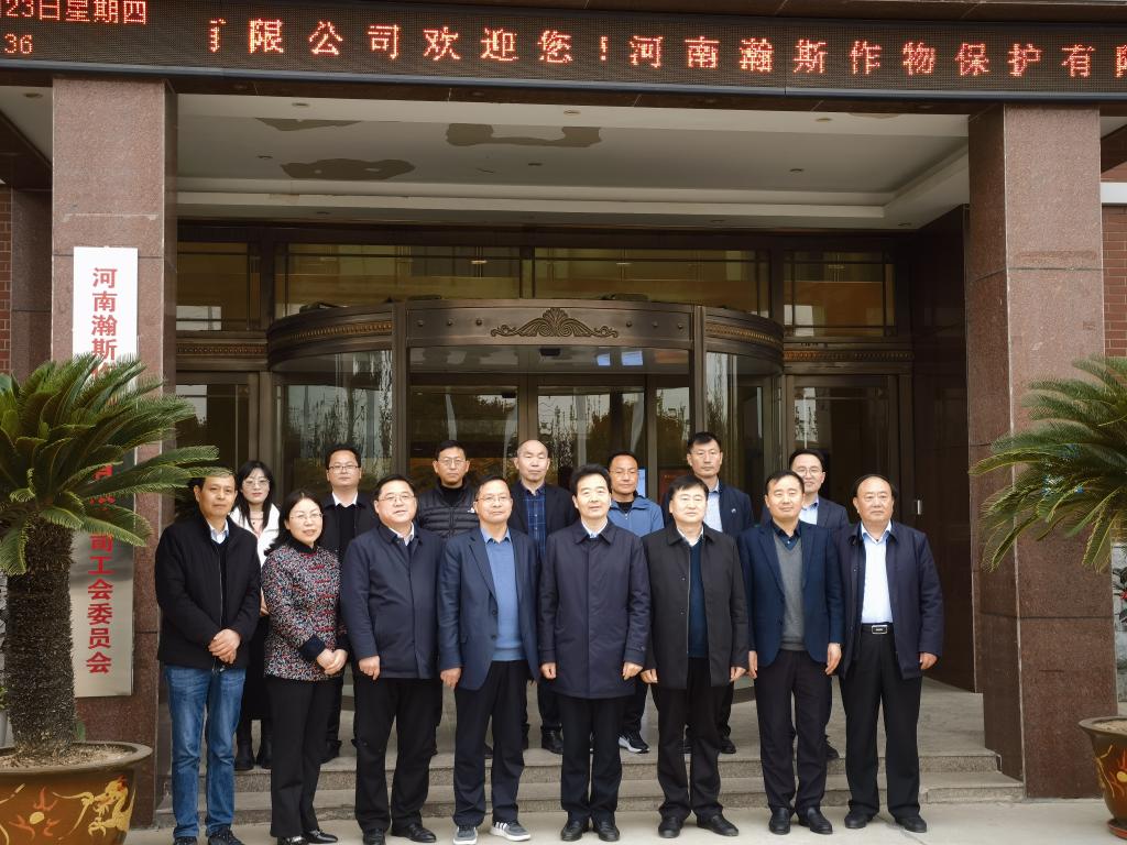 河南瀚斯作物保护有限公司总经理申艳林,副总经理申先锋、赵强陪同陈向炜董事长一行参观了公司党建办公室、工会办公室、职工书屋、展览室、研发中心和生产区产品仓库、生产车间等,了解了瀚斯党建、工会工作开展和发展、管理、研发、生产等方面的情况。