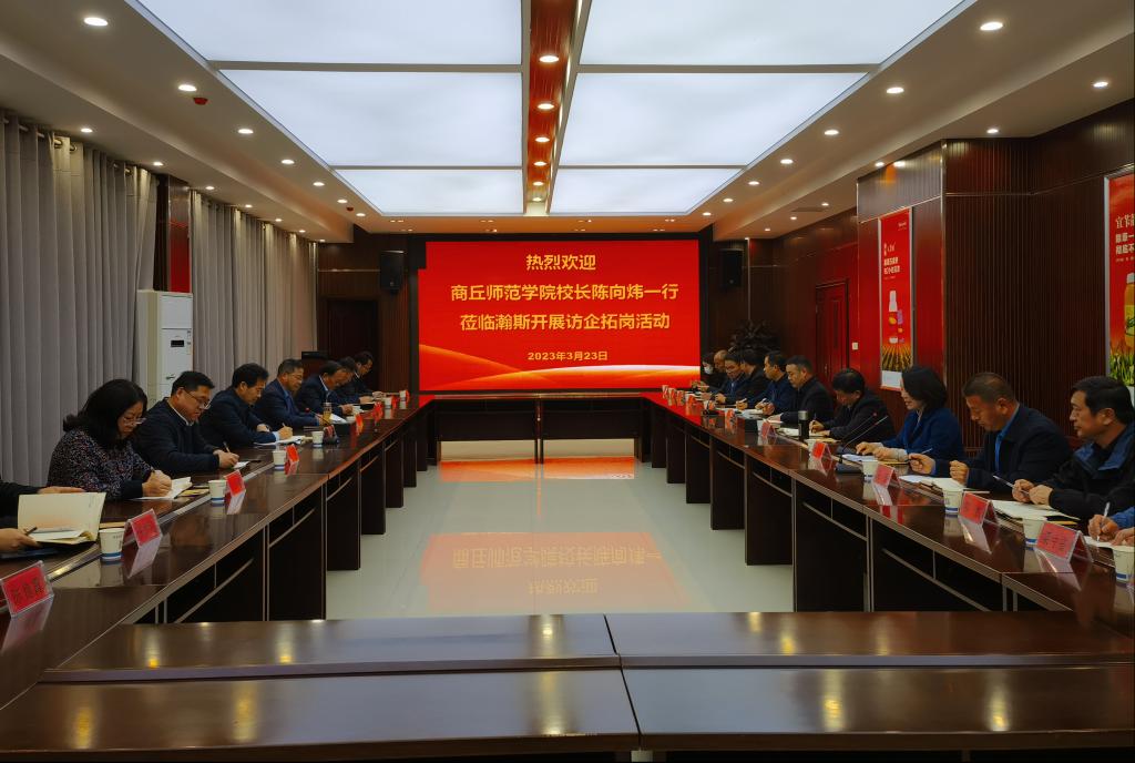 参观结束后,在河南翰斯集团公司生产基地会议厅召开了访企拓岗暨校企合作研发工作座谈会,睢阳区与会领导、高新区管委会及企业负责人、校随行人员代表围绕优化企业发展环境、深化校地校企合作、促进毕业生就业等问题进行了交流。